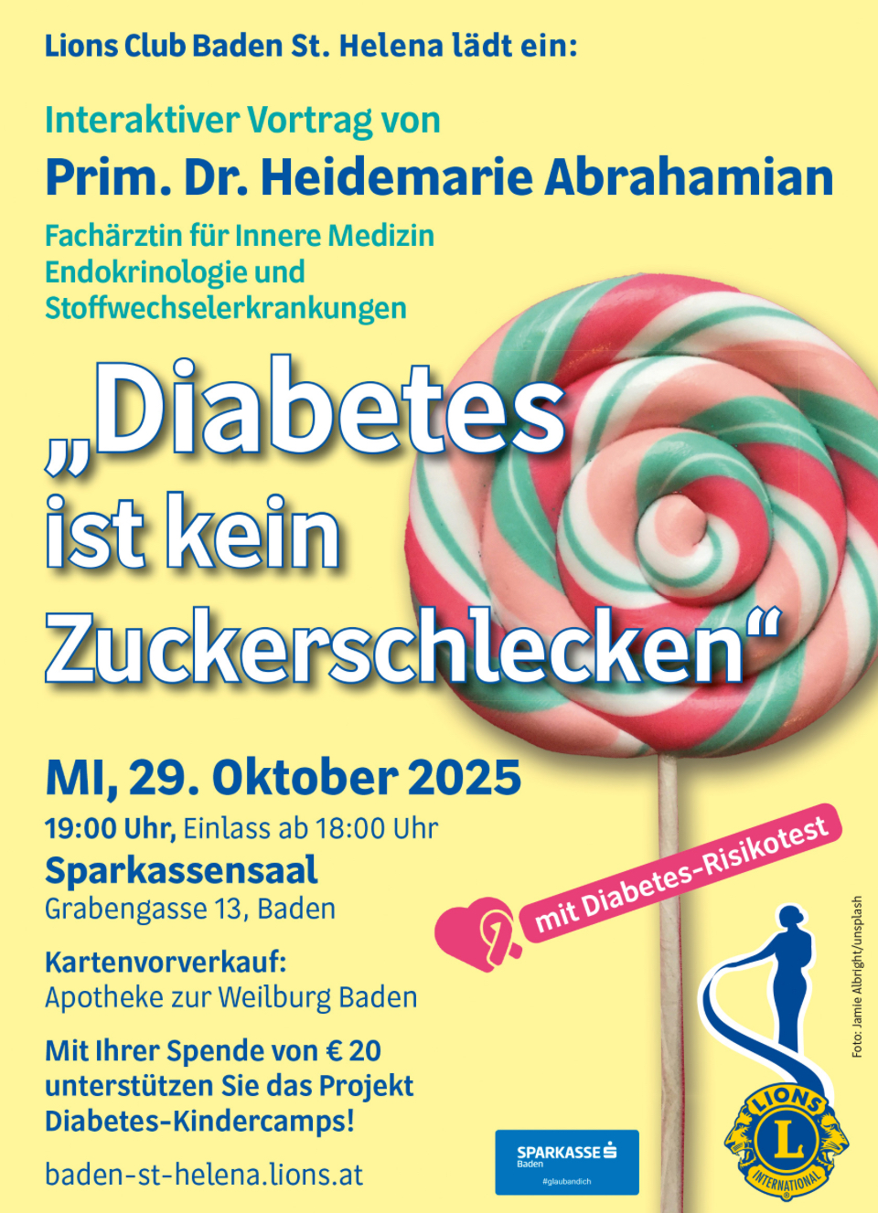 MI 29.10.25: Diabetes ist kein Zuckerschlecken: Vortrag von Prim.Dr. Heidemarie Abrahamian