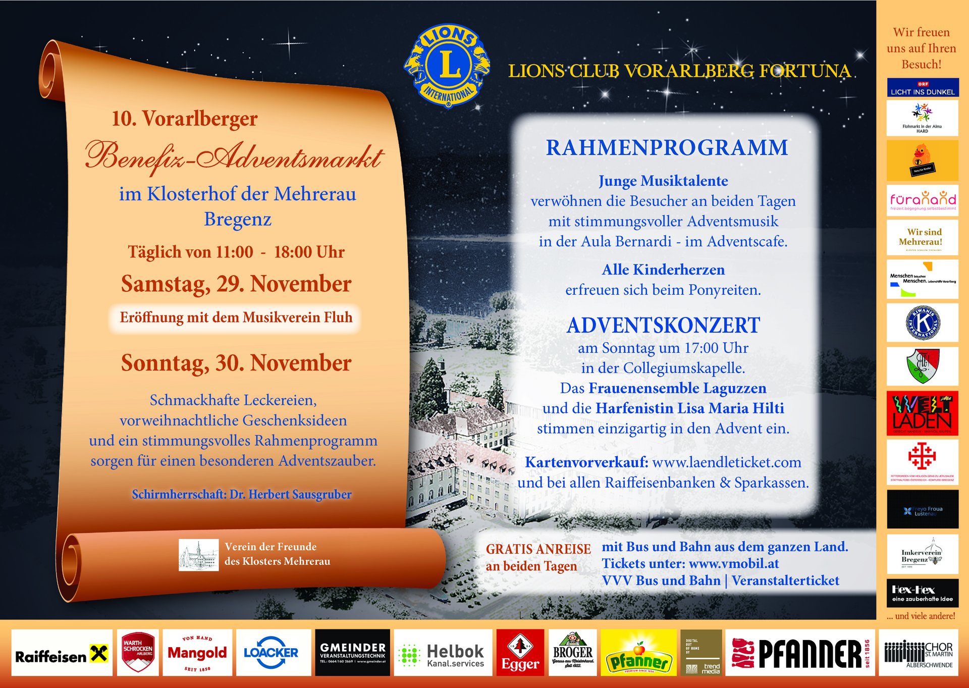 Der 10. Vorarlberger Benefiz–Adventsmarkt wird am Samstag den 29.11. um 11 Uhr mit dem