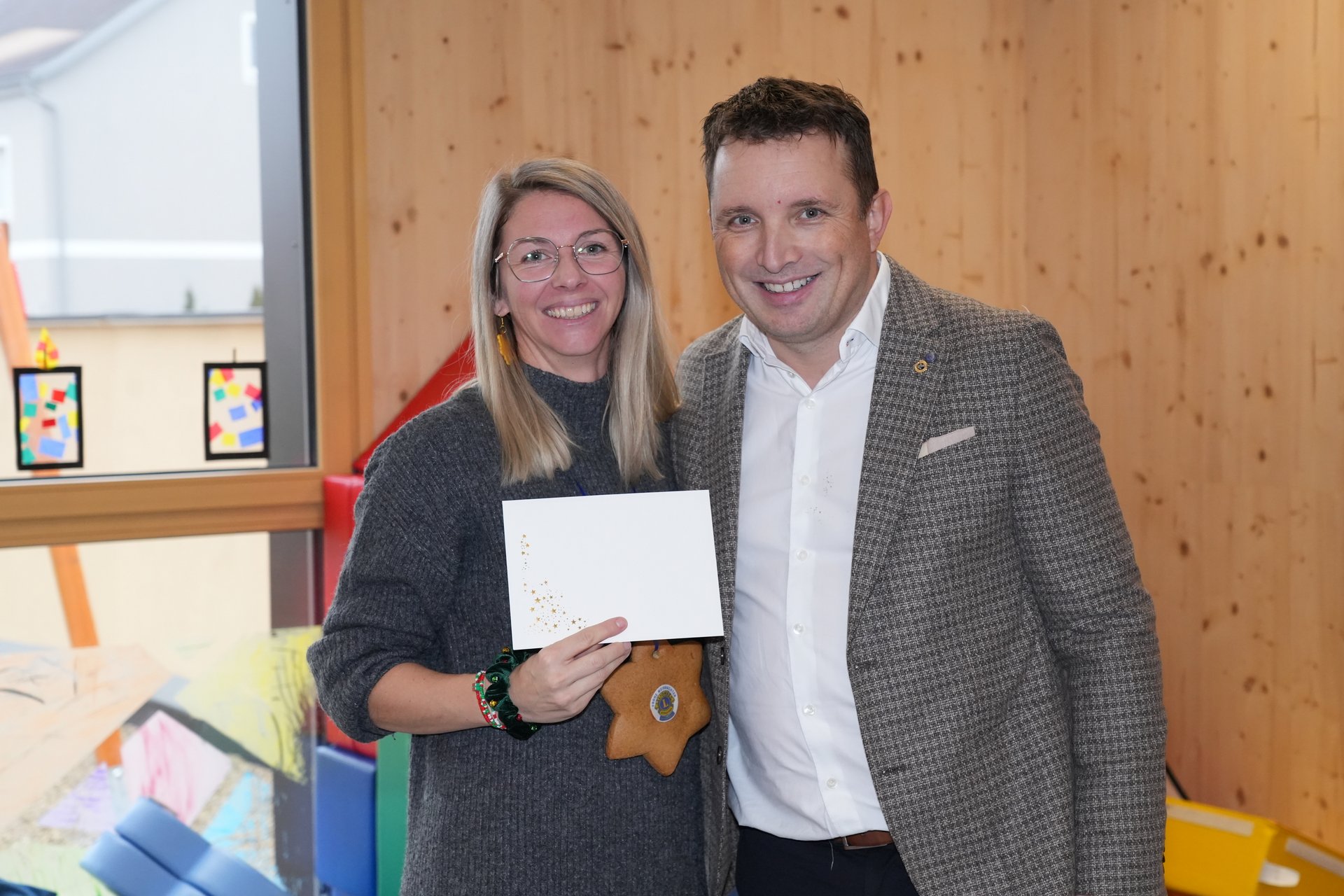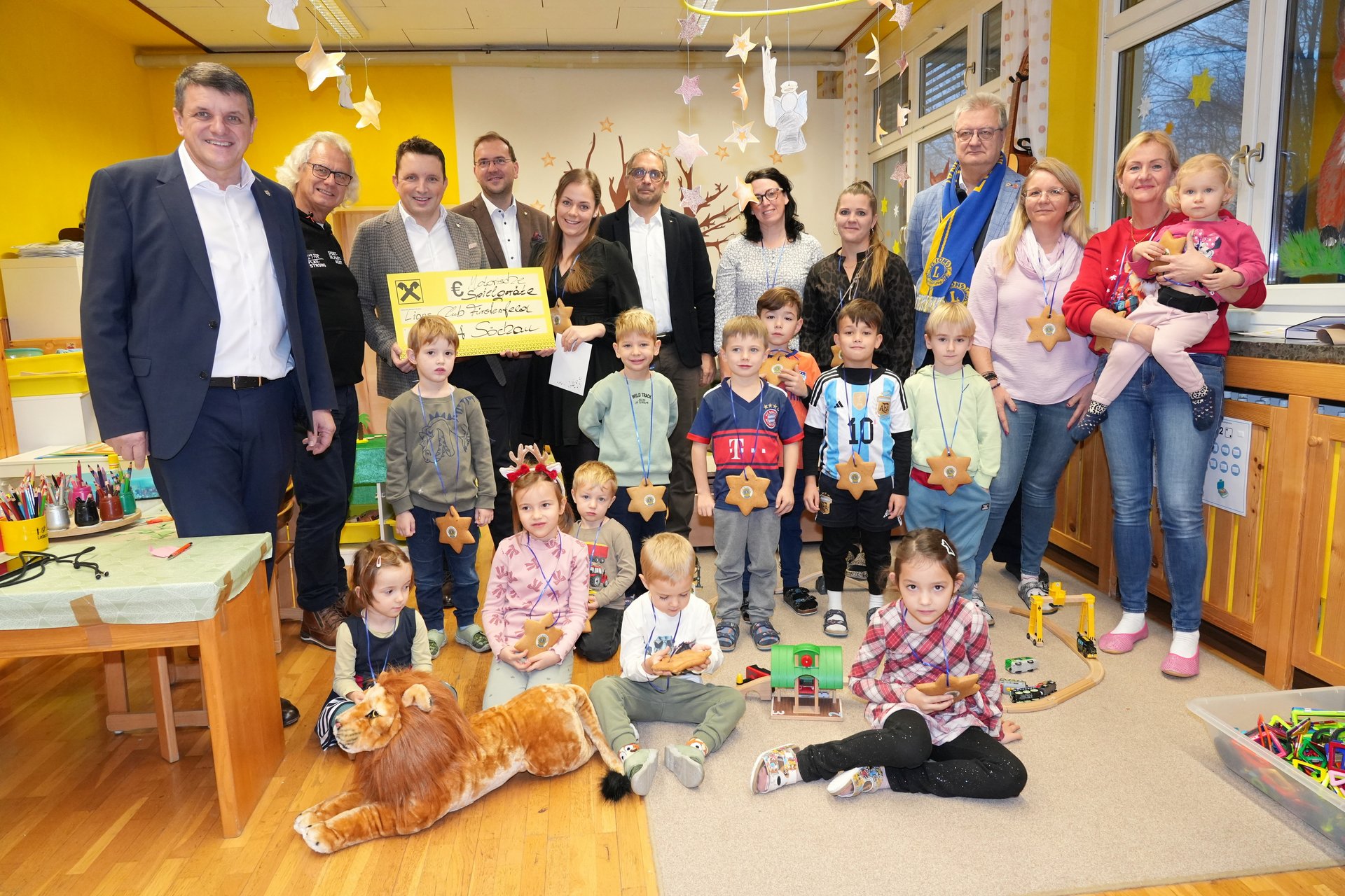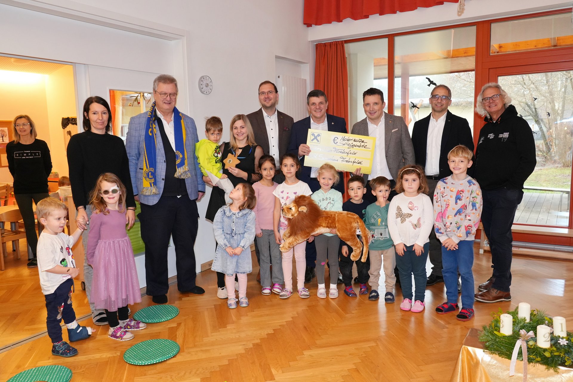 So wurde seitens der Fürstenfelder Löwen der Ankauf von Motorik- und Lernspielzeug im Gesamtwert von 4.000,- € ermöglicht. Präsident VDir. Martin Jost und Bgm. Franz Jost überreichten im Beisein einiger Lions Mitglieder den Beitrag für den Ankauf der pädagogischen Spiele bzw. köstliche Lebkuchen-Sterne für alle Kinder und dankten den Pädagog:innen für ihren wertvollen und engagierten Einsatz für die Entwicklung der Kleinsten unserer Region.