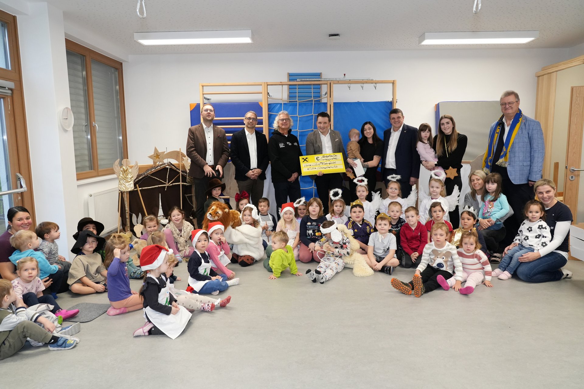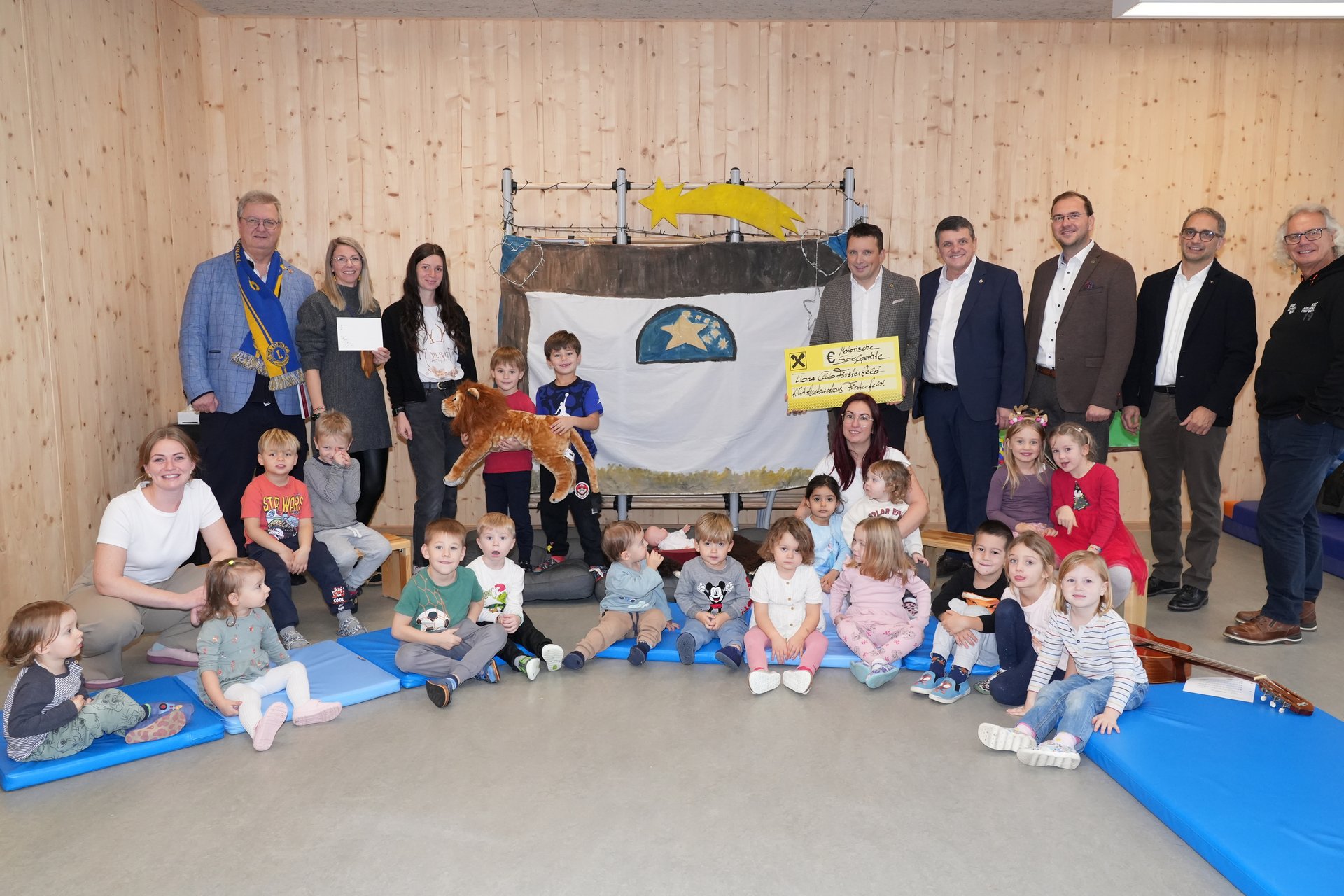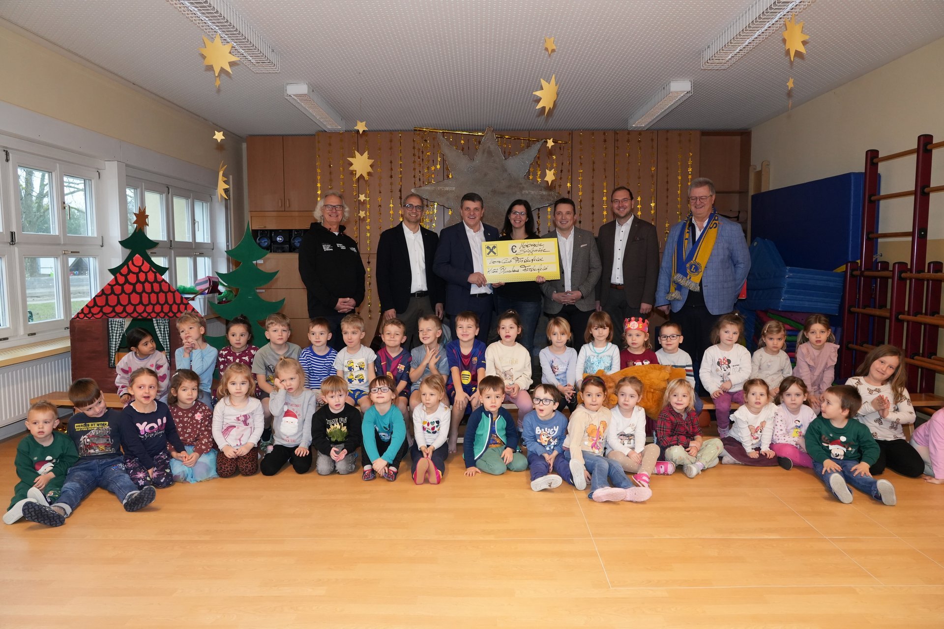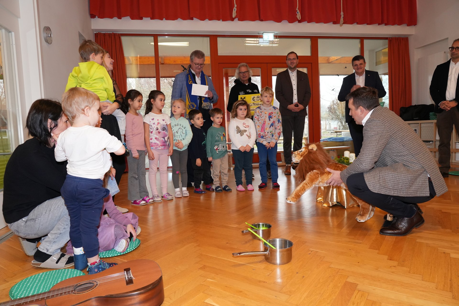 So wurde seitens der Fürstenfelder Löwen der Ankauf von Motorik- und Lernspielzeug im Gesamtwert von 4.000,- € ermöglicht. Präsident VDir. Martin Jost und Bgm. Franz Jost überreichten im Beisein einiger Lions Mitglieder den Beitrag für den Ankauf der pädagogischen Spiele bzw. köstliche Lebkuchen-Sterne für alle Kinder und dankten den Pädagog:innen für ihren wertvollen und engagierten Einsatz für die Entwicklung der Kleinsten unserer Region.